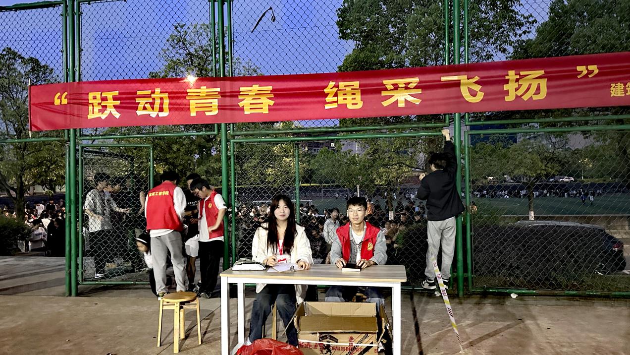 4月23日至5月6日,建筑工程学院在风雨篮球场举行“跃动青春绳采飞扬”为主题的跳绳大赛。