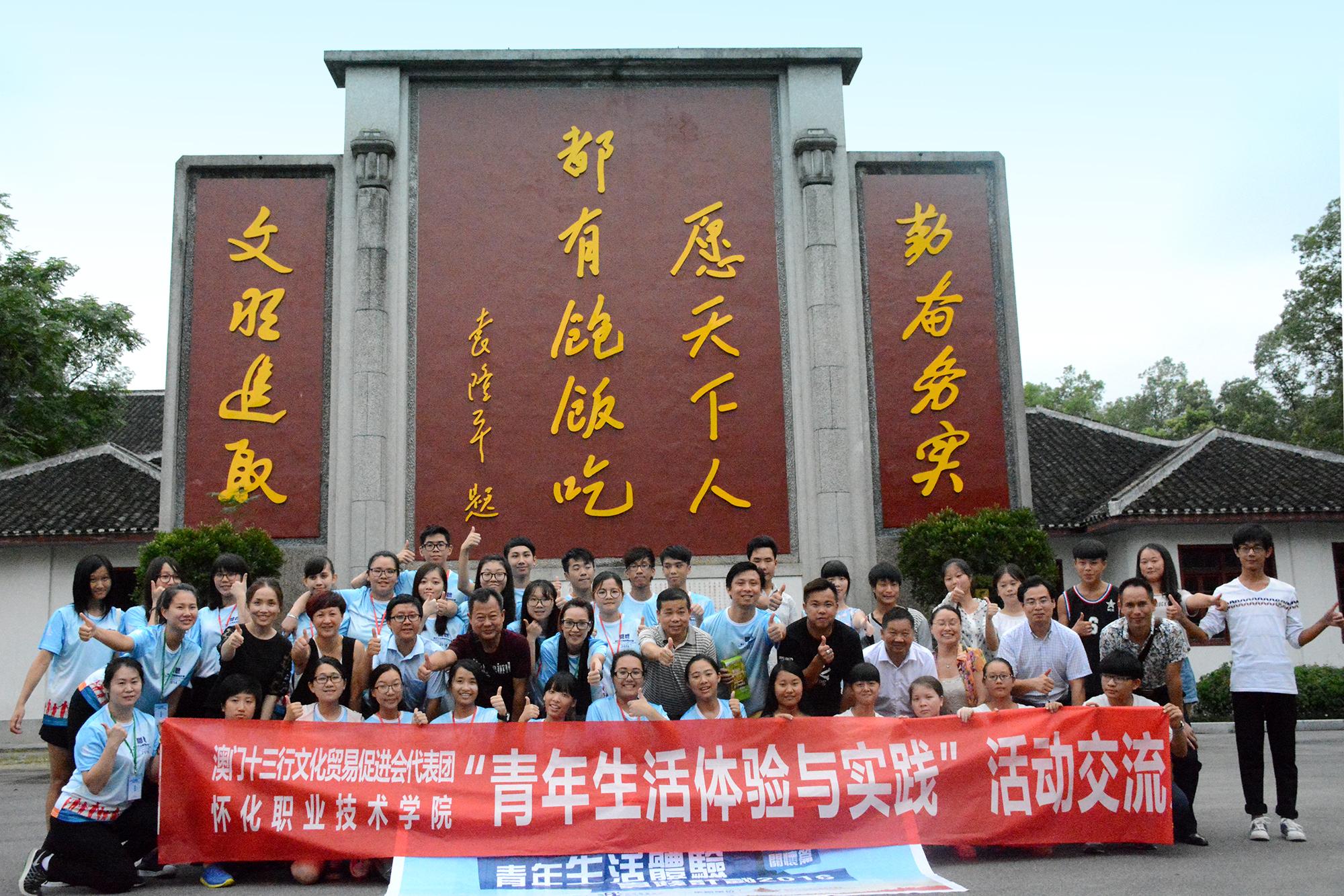 为宣传杂交水稻科研历史与隆平精神,促进两地经济社会与学术文化交流,84日,在安江农校纪念园举行怀化职业技术学院与澳门“青年生活体验与实践”主题交流活动暨授牌仪式。我院党委副书记邬国盛、副院长胡龙湘等一行12人前往安江农校纪念园欢迎澳门朋友的到来,澳门十三行文化贸易促进会20多名青年参与了此次活动。